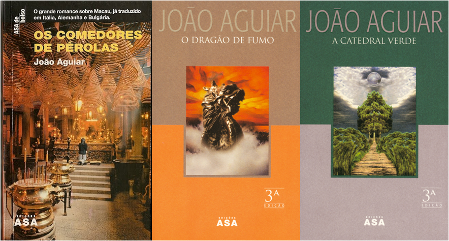 “Crónica de Santo Adriano” foi o nome que João Aguiar deu a um conjunto de três livros seus, sequenciais cronologicamente falando, apenas no seu foro íntimo, segundo palavras do próprio. São eles “Os comedores de Pérolas” (1992), “O Dragão de Fumo” (1998) e “Catedral Verde” (2000). Tem como protagonista Adriano Carreira, jornalista e escritor, marcado pela vivência com a cultura macaense e pela sua ligação a Portugal. Este é um dos panos de fundo das obras: os momentos pré-passagem de Macau, o Dragão de Fumo, ao domínio chinês.
